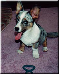 When Harry first came to live with us, he was kind of funny looking. He had really big ears and his head was too big for his body - kind of like me when I was a kid. He was just over four months old when we got him. He was old enough to want to be on his own, but still young enough to be a bit awkward around new things. Harry had learned good manners from his mother. He was very polite, he hardly ever barked, and he never growled. He was friendly and outgoing. Everyone who met Harry liked him right away. We went out and got Harry all the stuff that we thought a puppy might need to be happy. We got him his own bowl, a ball and lots of stuff to chew. We got him a nice big dog crate to sleep in because dogs have a den instinct and like to be in an enclosed place to feel safe. He seemed to really like the big yard he had to play in. He tried to make friends with the big dogs next door, and the cat too. He was getting along pretty well with everyone. Harry wasn't quite sure about some of the new rules, though, like "Don't chew what?"and "Don't pee where?" It would prove to be an interesting time. |